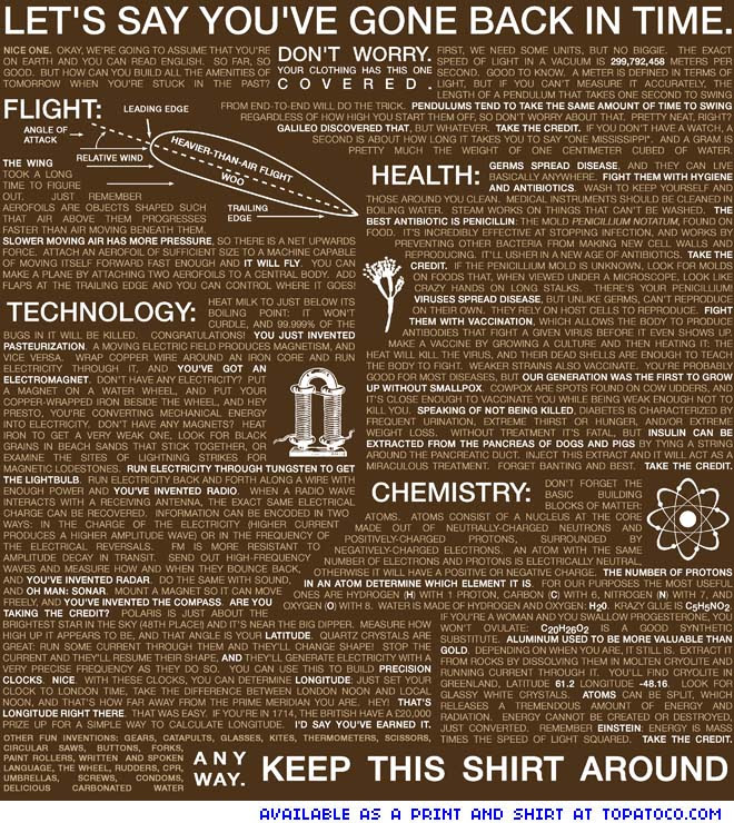 This was a nice surprise for me because I have given this subject much thought throughout my life. This was posted on qwantz and it made me laugh remembering all the time I spent trying to figure this out. Now I don't have to, I just need to buy this shirt and wear it at all times(just in case).